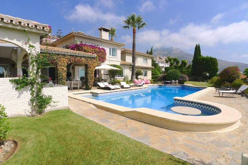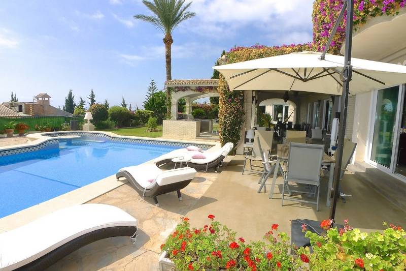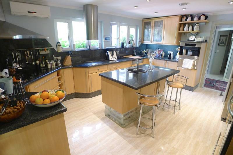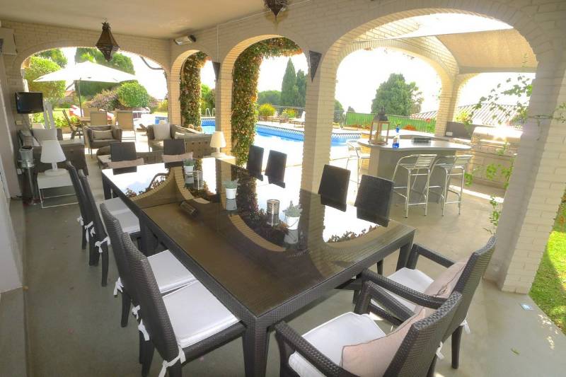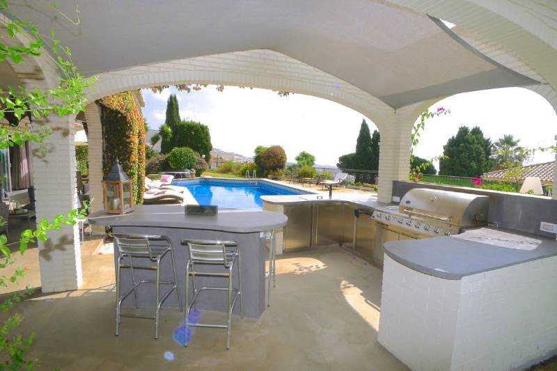 This impressive villa has an enormous driveway giving lots of car parking space, double garage, large lawn areas and extensive planting areas, a fabulous outdoor entertaining areas with both covered and open terraces, a beautiful luxury outdoor kitchen next to a large impressive swimming pool with built in seating and table plus diving board.